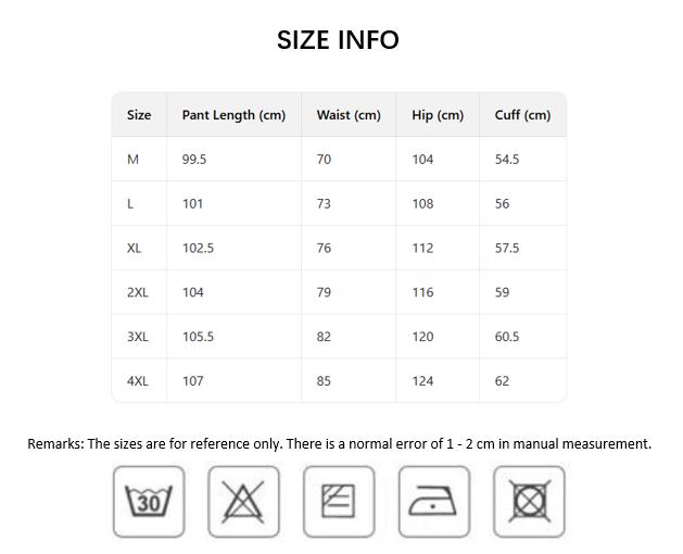 | Size | M, L, XL, 2XL, 3XL, 4XL |