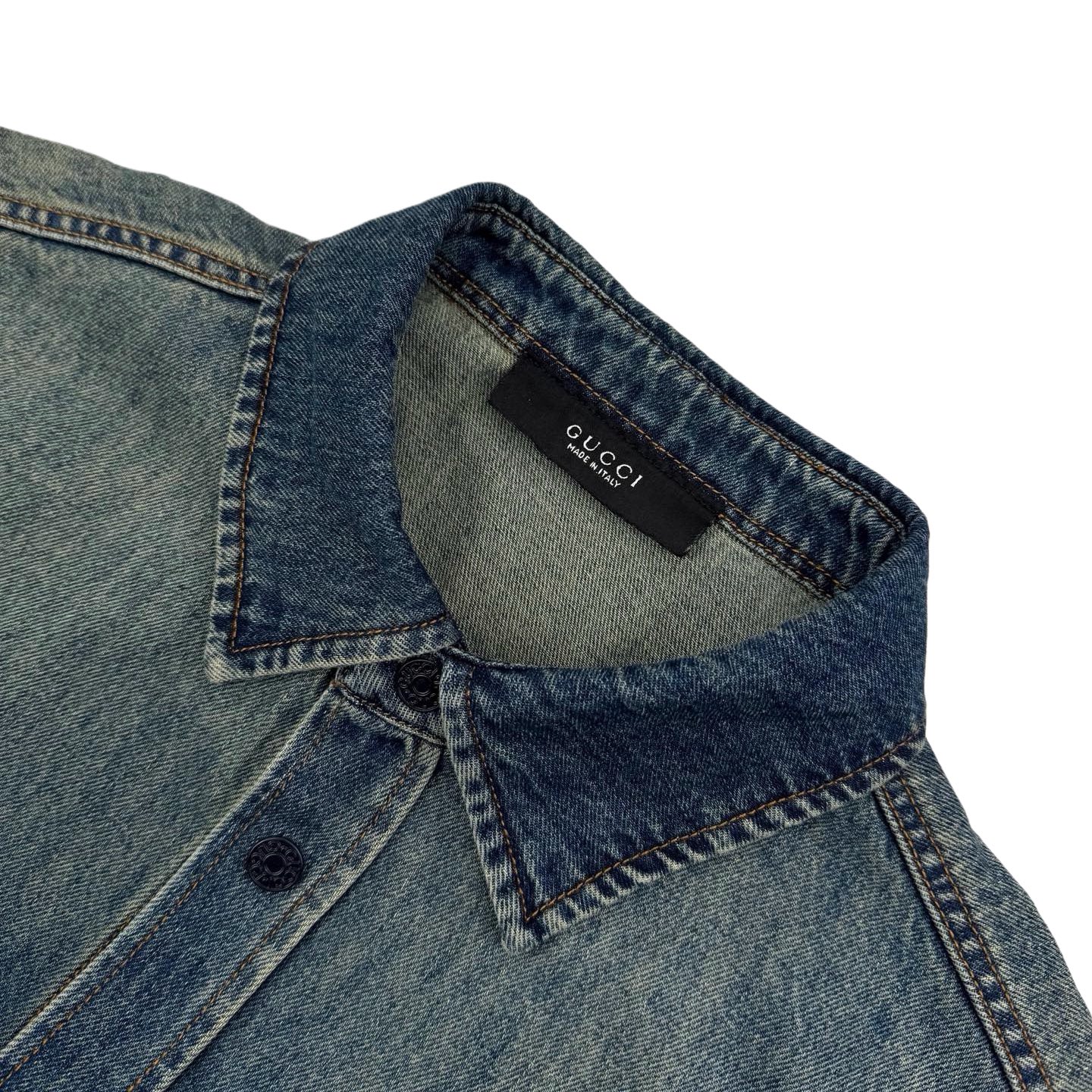 Gucci Demna Embroidered Logo Denim Long-Sleeve Shirt Jacket (Blue)