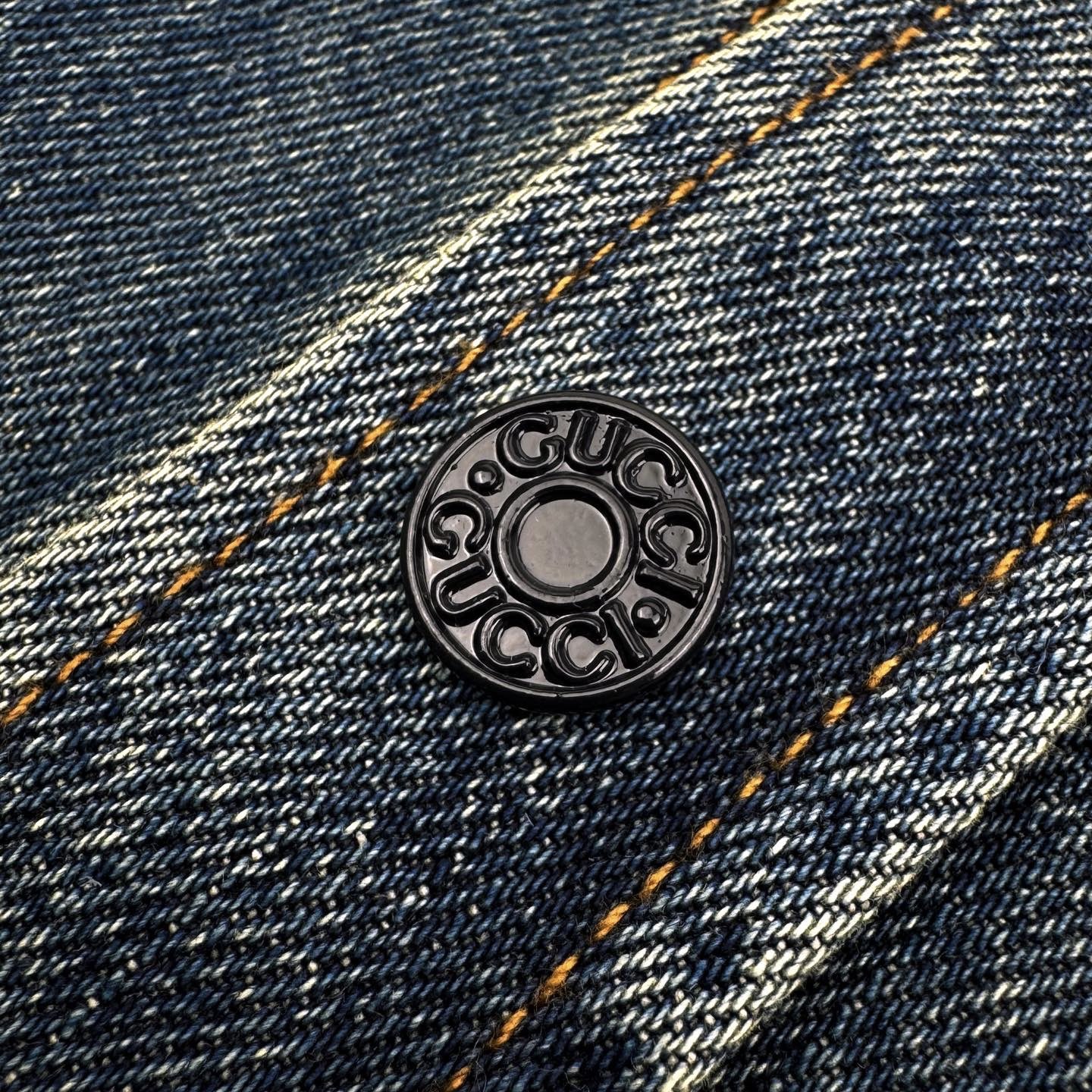 Be the first to review “Gucci Demna Embroidered Logo Denim Long-Sleeve Shirt Jacket (Blue)”