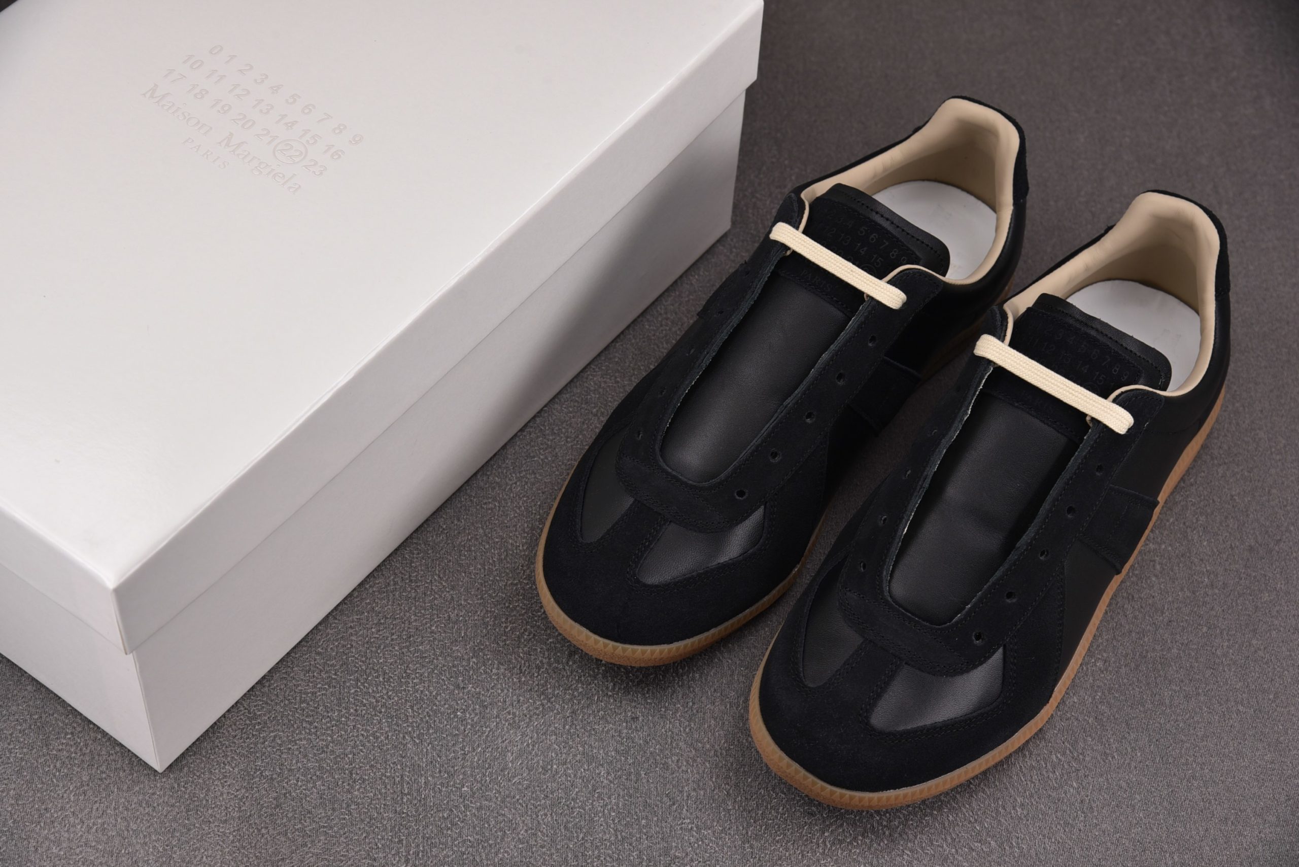 Dive into the realm of luxury sneakers with the Maison Margiela Replica German Army Trainer, a model that has garnered iconic status among aficionados. This luxurious rendition is inspired by the classic German Army Trainer design, a legacy that has paved the way for countless contemporary sneaker silhouettes​. The “Replica” title isn’t a guise of imitation, but a homage to the timeless German Army Trainer, blending past heritage with Maison Margiela’s high-end, avant-garde touch.